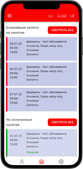 б) группы/предметы - с не оплаченными занятиями, в долг (для групп с оплатой за занятия), и те, за которые оплачено меньше, чем цена записи (для групп с единоразовой оплатой). Например, курс стоит 10000 р., а внесено 5000 р.